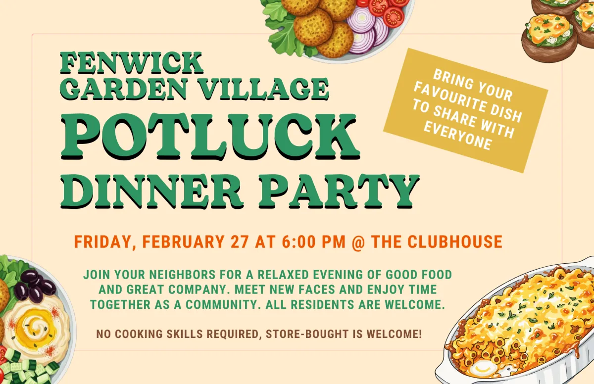 No cooking skills required, store-bought is welcome. All Fenwick Garden Village